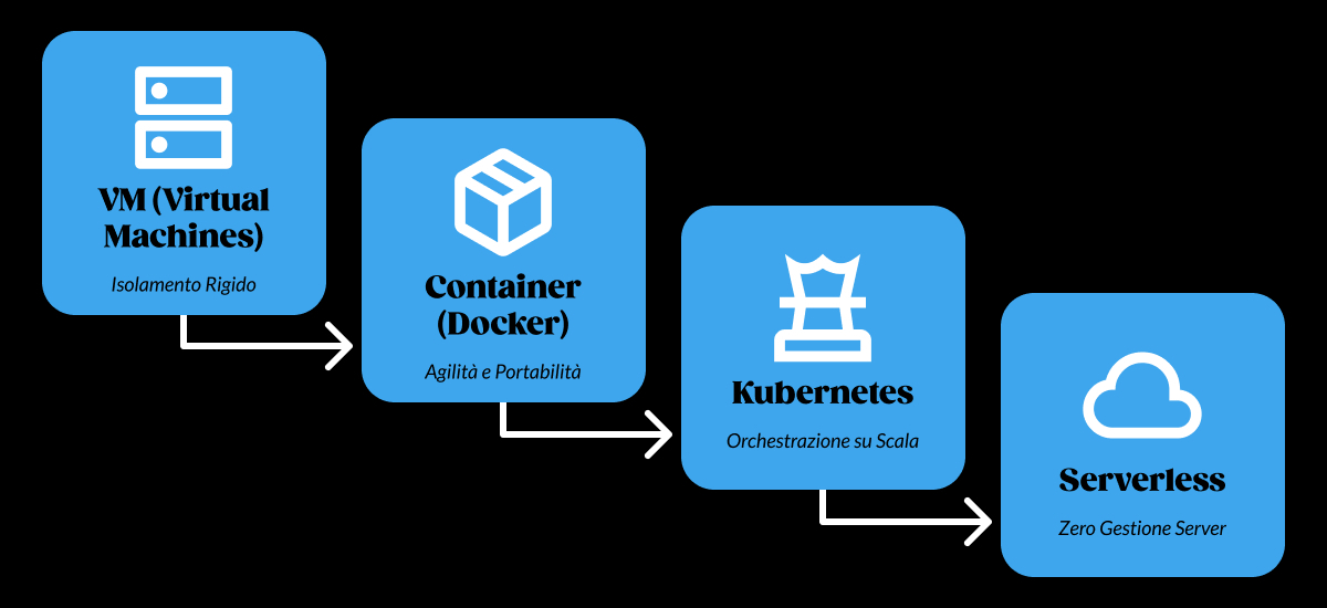 Il passo successivo è stato Kubernetes, lo standard per l’orchestrazione in ambienti complessi. Per le aziende che operano su larga scala, Kubernetes è vitale per: